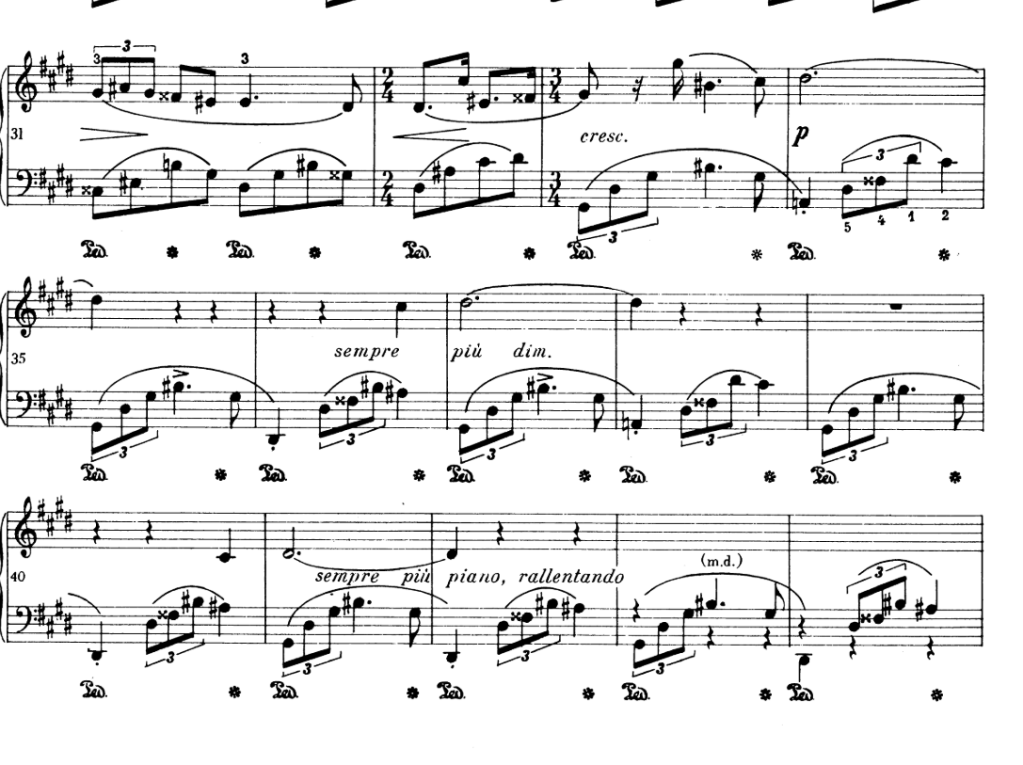- pp let RH fade in with LH. Don’t rush in these sections, add HEAPS of rubato