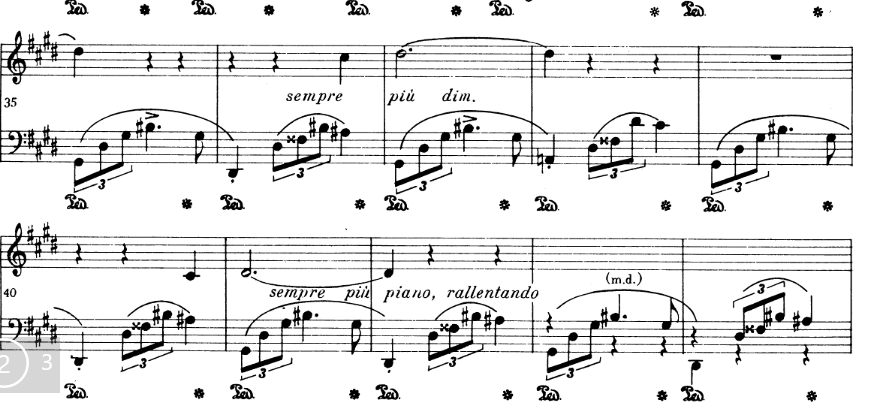 - dolce – can’t be past a certain volume level, but RH melody can still be heard