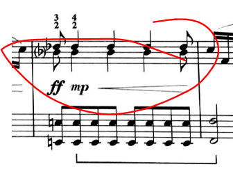 - big phrasing, emphasise top note only