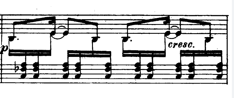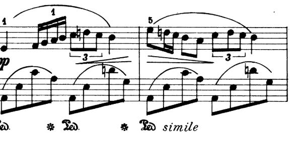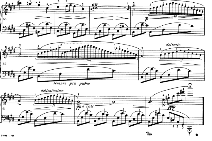 - here, no rubato, keep up rhythm. Also watch for pedalling