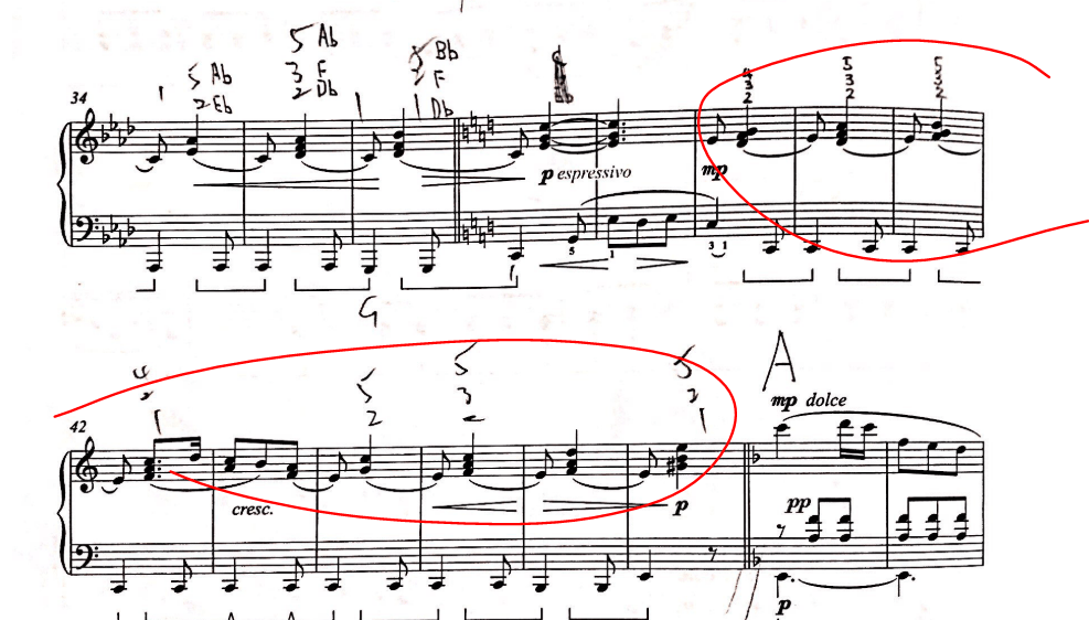 - strong melody notes, plus strong chungis. Melody ‘sempre marcato’