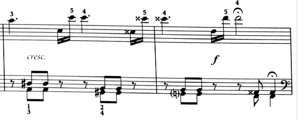 - implied rit at 35, to lead into pauses. don’t cresc early