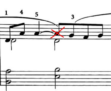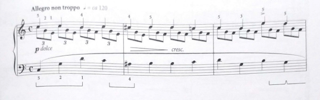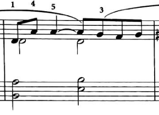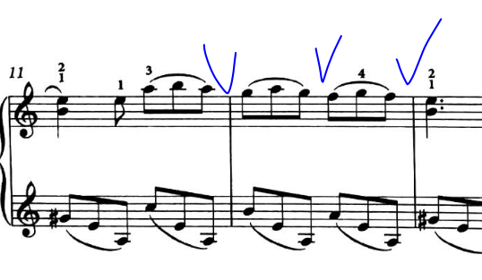 - starting from bar 1, hold top note of RH. Curve fingers. After technique is right, phrasing. After that is right, increase speed, 2 or 4 bars a time