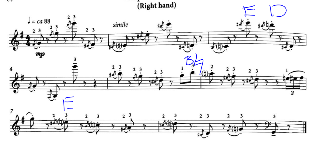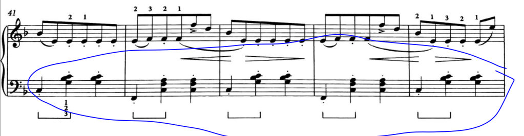 - bar 41, LH is repetitive, good to practice LH only for technique