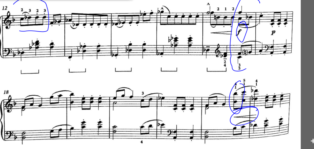 - bar 16 onwards, call and response expression. A loud call, a soft response. This is nearly each part of the music after.