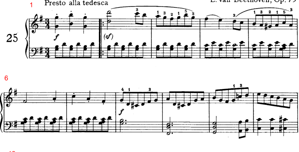 - 2nd page in general, refine dynamics. divert Beethoven aggression into sf